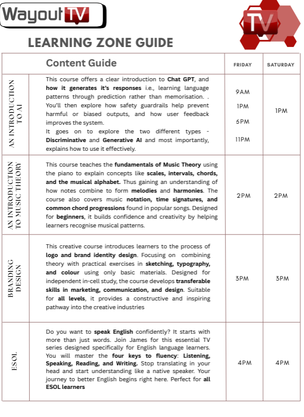 Way2Learn is a flexible, video-based learning platform designed for people who face barriers to traditional training and education. Our bite-sized courses can be accessed in secure settings, at your own pace, with minimal staff input.